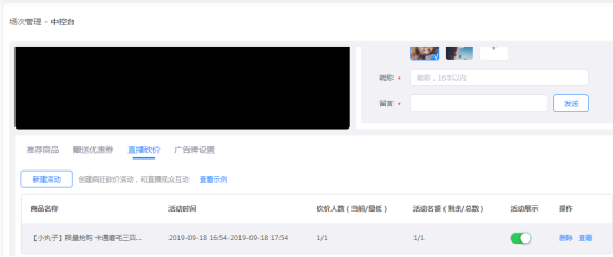 点击“查看”可以查看直播设置情况,点击删除“删除”砍价活动
