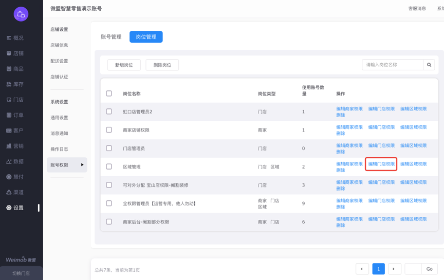 设置路径:商家后台-设置-系统设置-账号权限-岗位管理-新增岗位