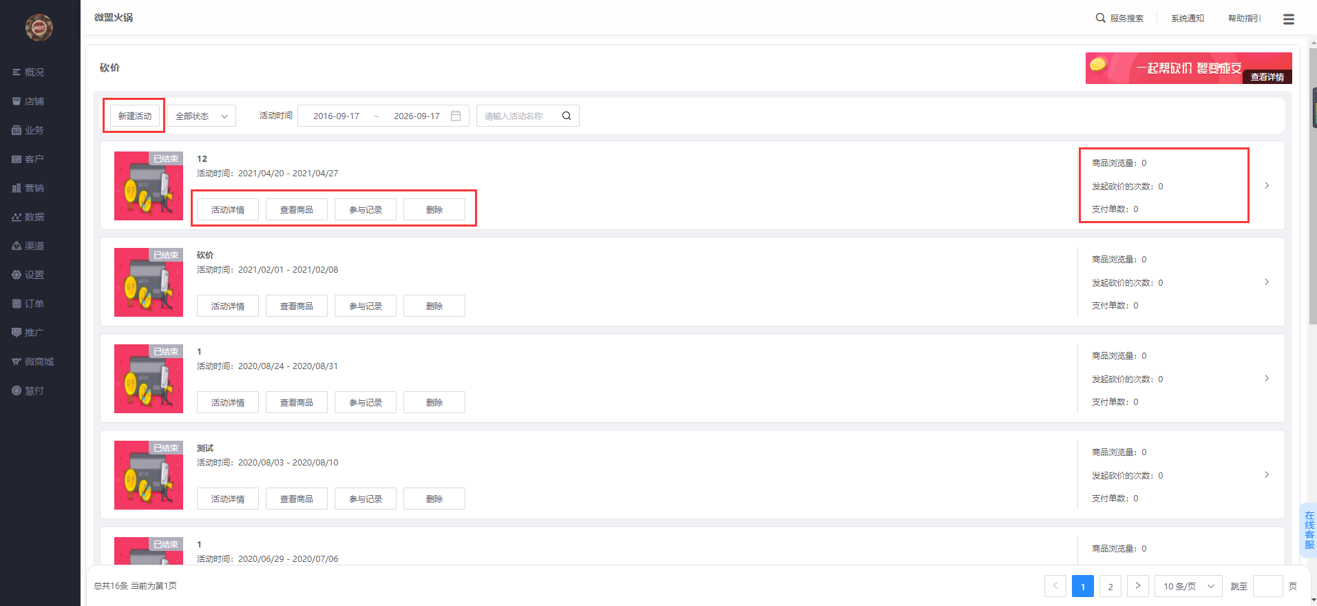 l 点击【新建活动】进入编辑砍价活动的具体内容;