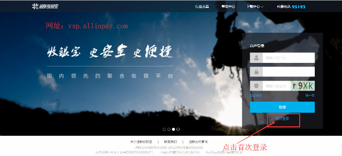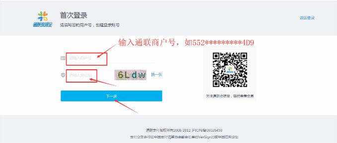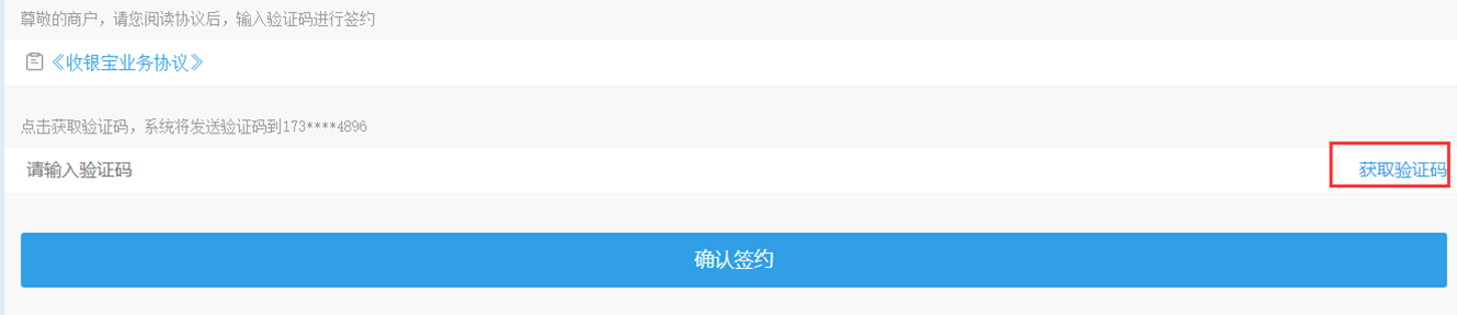 4)发送验证码:系统会向申请通联商户号时预留的手机号发送验证码;