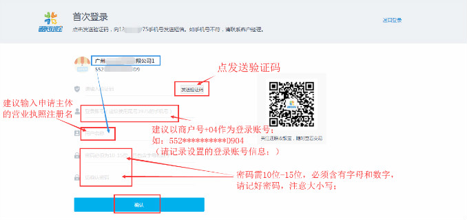 设置登录号:建议以商户号+04作为登录号,如552****D904,请务必记住设置的登录账号信息;