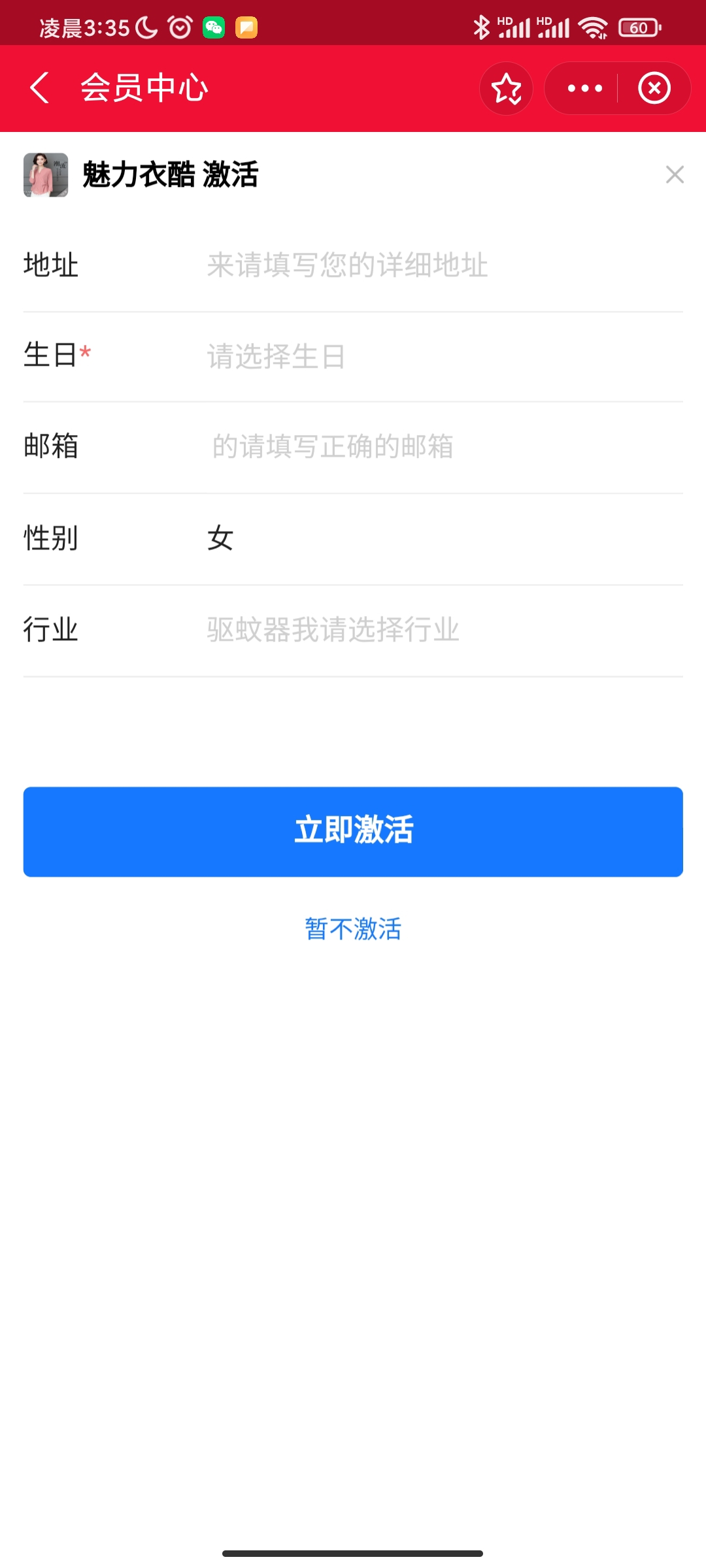 提示:如会员卡设置的开卡资料中信息较多,则会弹出资料补充弹窗填写所需信息。填写信息后点击“立即激活”即可。